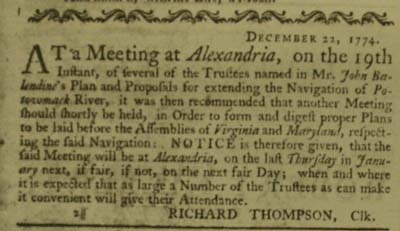 Virginia Gazette, as shown below, and in the Maryland Gazette.