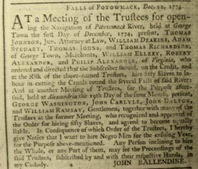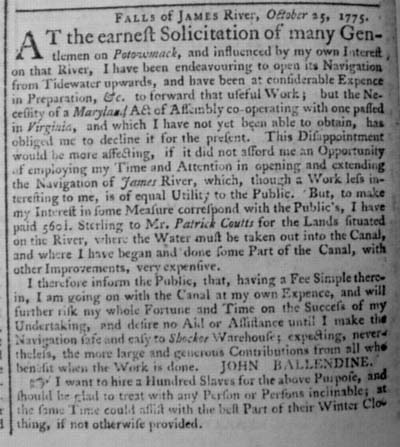 notices from the Virginia Gazette, shown above, appeared