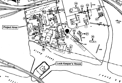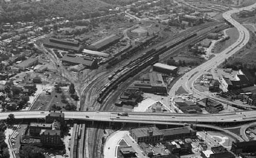 side, the canal basin and the B&O tracks beyond formed a bustling