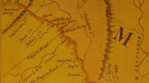 To be addedMile 99.5 : Conococheague Creek had long been used as a path by Native Americans travelling down the Great Valley from what is now Pennsylvania, and later by settlers following the same route to the Shenandoah Valley. The Indian name proved a bit of a challenge for colonial officials, who referred to it variously as Conegocheek, Conegogeek, Conegocheige, Conegochiegh, and Conegogee. Evans Watkins established a ferry from Maidstone on Virginia shore in the 1740s and the Ohio Company built a stone warehouse at Maidstone as a part of its trade route across the Appalachians. In 1754, when Braddock arrived on the scene, Governor Sharpe was quick to recommend the advantages of transportation via the Maryland route: "I apprehend it will be the best & easiest way to land every thing that shall be sent up Potowmack for the Troops at Rock Creek whence our waggons will carry them to Conegocheek where Battoes [boats] may be made to convey every thing thence by water." Braddock hedged his bets by sending the 44th regiment of the Coldstream Guards up through Maryland, but when the roads west proved too primitive, they crossed at Conococheague (April 30, 1755) to catch up with the 48th Regiment, which was following the alternate route through the mountains of western Virginia. After Braddock's army was routed along the Monogohela River in July, many "back inhabitants" were reported to be fleeing from the western settlements and Conococheague. Governor Sharpe of Maryland arrived at Conococheague and stayed the panic by promising that Fort Cumberland would continue to be garrisoned, and ordering the construction of several small forts, including Fort Tonoloway (see mile 124). Even so, by September the Governor was reporting that "the Country is deserted for 30 Miles Eastward of Colo Cresap's who is also removing or removed down to Conegogeek where one of his Sons inhabits." [Cresap was based at Oldtown, see mile 167.] The following May, Virginians killed a French ensign who was travelling with a party of hostile Indians, and found orders from the commander at Fort DuQuesne in a little bag tied about his Neck, instructing him to destroy the magazine of provisions left at Conococheague by the Braddock expedition. That September, war parties approaching Conococheague from the north set off another panic, causing Governor Sharpe to lament that "this Accident has so terrified our Back Inhabitants that Hundreds of them have abandoned their plantations & one of our most flourishing German Settlements is on the Brink of being entirely broke up." After the Revolutionary War, General Otho Williams set out to establish a town at the mouth of the Conococheague. The Maryland Assembly passed an act of incorporation in 1787, and General Williams' brother, Elie, supervised much of the early development of the town. In 1790, when Congress voted to establish the Federal City somewhere on the Potomac, it specified the mouth of the Conococheague to be the upstream limit for placement of the capital. In October of 1790, President Washington himself came up the river to look at possible sites on the Monocacy, at Shepherdstown, and at Williamsport. After a warm reception in Elizabeth Town (Hagerstown), Washington met with Elie Williams at Williamsport on the 21st. But even Washington, who had chartered the Patowmack Company to build canals around the falls on the Potomac, must have realized that he could not count on navigation this far upriver. Many historians suspect that he had already decided to place the city next to Georgetown, and only toured the other sites as a negotiating ploy. Nevertheless, the landowners in the area took the trip quite seriously and forwarded various proposals to the president, including a plat of Williamsport. Williamsport endured several hostile visitations during and after the battle of Antietam (September 17, 1862). Six days before the battle, Jackson's men crossed into West Virginia from Williamsport as a part of the action to encircle Harpers Ferry. At some point just before the battle of Antietam, General George McClellan ordered Captain Charles Russell of the First Maryland Cavalry to destroy the bridge over the canal at Williamsport to prevent its use in the event of a Confederate retreat. By noon on the day of the battle, Union "vedettes" had reported that the bridge had been burned and (incorrectly) that the Conococheague Aqueduct had been destroyed. This concluded a remarkable ten-day span for Captain Russell, whose men had skirmished with Confederates at Point of Rocks on September 7th (killing 3 and capturing 17), scouted the Confederate column at Frederick on the 9th (capturing 13 men and 9 horses), reported on a skirmish at Williamsport on the 11th, rejoined the Federal troops besieged at Harpers Ferry on the 13th, slipped through enemy lines on the night of the13th, and delivered a message to McClellan at Frederick, Maryland, on the next morning. A few months later, promoted to Major, he was a key witness in the hearings to determine the reasons for Colonel Miles's controversial surrender of Harpers Ferry. After the Confederate army had crossed from Sharpsburg back into West Virginia, Robert E. Lee directed J.E.B. Stuart to take a force back across the fords at Williamsport and make a "demonstration" against the enemy. Stuart held the town for two days (September 19-20) before being forced to retire. His report notes that the canal bridge had indeed been burned, but his men were able to open a road under the aqueduct. Heros von Borcke, a Prussian cavalryman riding with Stuart's men, described their escape back into West Virginia: