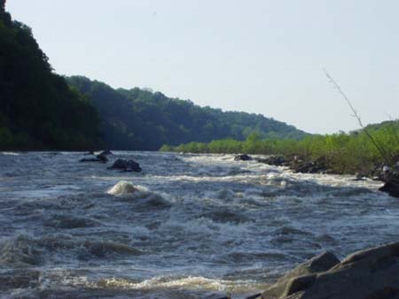 the towpath you can follow a concrete-surfaced road down to the boulder-strewn
