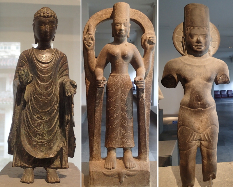 This brings the visitor to the wings with the Museum’s stunning collection of statues from the southern region (Rooms 6 and 7). Here the exhibits are presented purely as art, stripped of any historical context. (Note that, although the signage for Room 6 only refers to Óc Eo, the hall has many fine pieces of Khmer art from the Mekong Delta.)