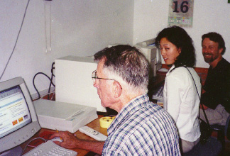 Charles, Stephanie, and Richard cybersurfing at the "Emotions" cafe in Ha Long.