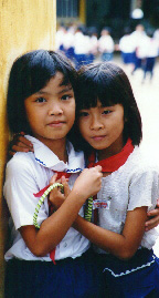 wet streets of Hanoi, and two schoolgirls. |